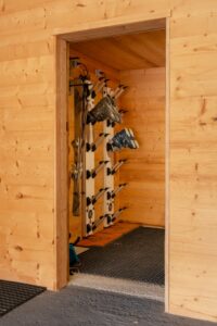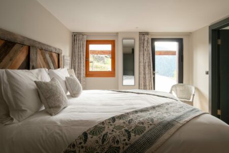 Practical features include a secure, heated boot room for storing ski and snowboard equipment, ample bike storage for summer adventures, and a laundry room with a washing machine and tumble dryer. High-speed Wi-Fi and a smart TV cater to your entertainment needs, while an electric car charging point and parking for multiple vehicles add to the chalet’s convenience. Egyptian cotton bed linen, towels, and robes are provided, including dedicated towels for hot tub use, ensuring a luxurious touch throughout your stay.