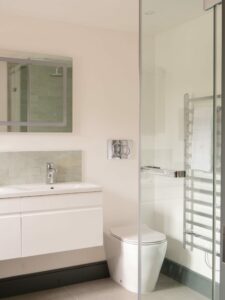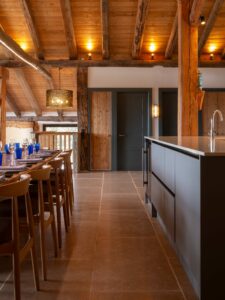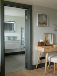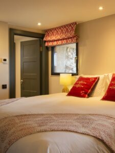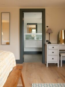 The five luxurious en-suite bedrooms are designed with comfort in mind, featuring calming neutral tones and flexible bed configurations. Guests can choose between super king-size or twin beds, while two of the bedrooms also include modern wall-mounted bunk beds, allowing these rooms to accommodate up to four guests each. Every en-suite bathroom is finished to a high standard, ensuring a relaxing and indulgent experience for all.