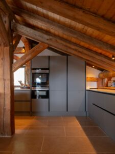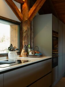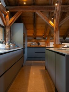 At the heart of the chalet is a magnificent 120sqm open-plan kitchen, dining, and living area. Expansive windows frame breathtaking panoramic views over Morzine and the surrounding peaks, creating a picturesque backdrop for your stay. A stylish double-sided log burner enhances the cozy ambiance, making it the perfect space for family and friends to gather and share stories after a day of adventure. The fully equipped kitchen is a chef’s dream, complete with modern appliances and plenty of space to prepare and enjoy hearty Alpine meals.