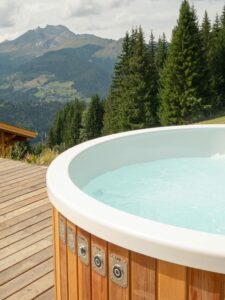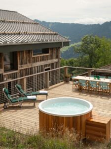 Externally, Chalet Beauceron continues to impress with a large decked terrace that’s perfect for alfresco dining in warmer months, complete with a gas BBQ. For ultimate relaxation, the barrel-style hot tub offers a tranquil retreat where you can soak up the stunning Alpine views and soothe tired muscles. In spring and summer, loungers on the terrace provide a peaceful spot to bask in the sun or unwind with a good book, while the surrounding landscape offers unparalleled tranquility.
