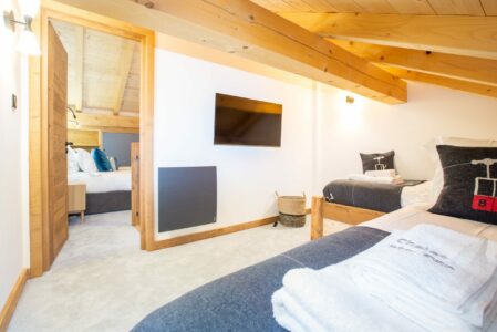 Nestled in the serene landscape of Morzine, Chalet Peter Pan effortlessly combines elegance with Alpine coziness. This exquisite four-bedroom penthouse property sleeps up to 10 guests and boasts three en-suite bedrooms alongside a thoughtfully designed family suite. The suite comprises two interconnecting bedrooms, offering the perfect balance of privacy and togetherness. Each bedroom is individually designed, featuring plush furnishings and picturesque views, creating sanctuaries that ensure a rejuvenating stay.