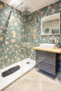 Designed with a spacious split-level layout, the kitchen diner is set slightly apart from the lounge, creating a large open-plan feel that’s ideal for relaxing and entertaining. The kitchen is fully equipped for preparing meals, while the cozy lounge, inclusive of sofa bed, provides a welcoming space to unwind after a day in the mountains. The property benefits from underfloor heating throughout, ensuring warmth and comfort, particularly during the winter months.