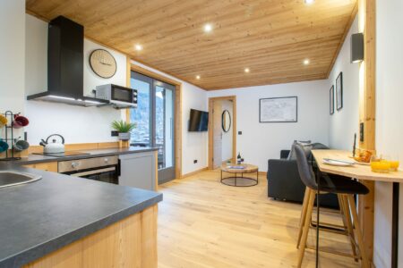 This contemporary 1-bedroom apartment is ideally located just a short walk from Morzine’s town centre, as well as the Super Morzine and Pleney Telecabines, offering easy access to both winter and summer activities. Sleeping up to 4 people with the use of the lounge’s sofa bed, this stylish apartment enjoys unrivaled views across Morzine, making it the perfect base for your Alpine getaway.