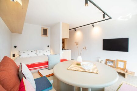 Le Schuss is a charming one-bedroom apartment in central Morzine, newly renovated in a modern Scandi-chic style for Winter 2025. Combining clean lines, natural materials, and a warm Alpine feel, this stylish retreat offers an ideal base for families or small groups looking to Unwind and explore the mountains in comfort. Perfectly positioned for year-round adventures, Le Schuss is just 450m from both the Super Morzine and Pleney telecabines, giving effortless access to skiing, biking, and hiking trails across the Portes du Soleil. Shops, bars, and restaurants are just 150m away, placing you in the heart of Morzine’s vibrant village life while maintaining peaceful surroundings.
