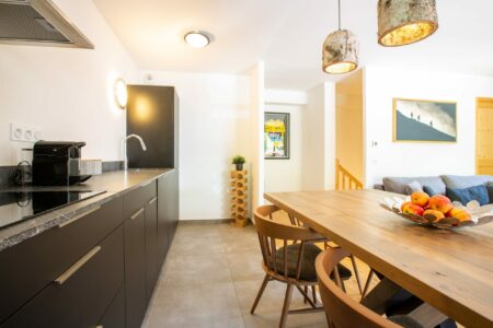 Guests benefit from a secure private ski locker and a dedicated underground garage – ideal for storing equipment or covered parking. The location makes it easy to hit the slopes and trails, with the Prodains Express just 600m or a quick 2-minute ride on the free ski bus, which stops right outside the building. Morzine town centre is also easily accessible by free shuttle bus in just 7 minutes, where you’ll find a wide range of restaurants, bars, and local shops.