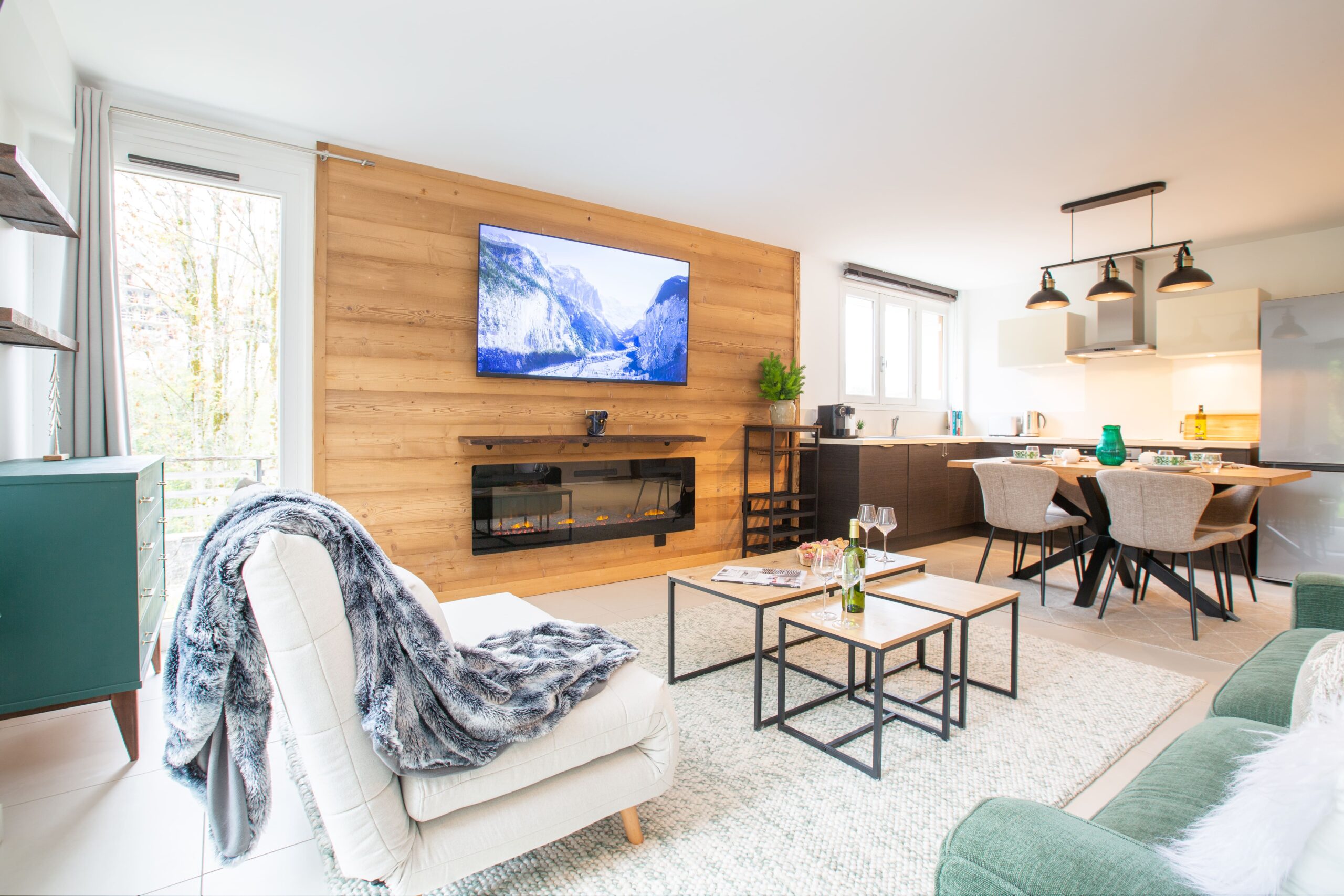 Val D’Aulps is a charming and spacious two-bedroom apartment in Morzine, designed to offer comfort and flexibility for families or groups of friends. Recently renovated with modern finishes and a stylish electric fire feature wall, this apartment combines contemporary design with all the warmth of a home-from-home in the Alps.